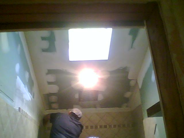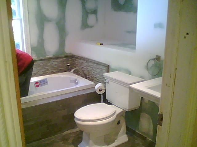 Below we relocated the toilet and built a roman tub insert to accept the new jacuzzi tub.