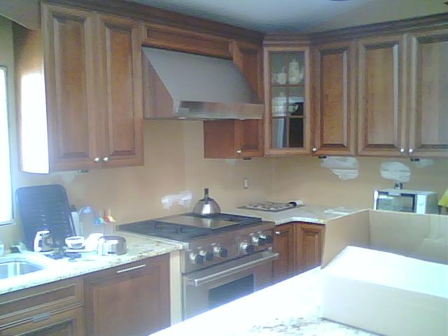 Even a fancy over the stove top hood was installed which was over this large island.