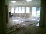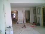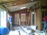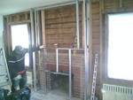 This picture shows demo and building a steel frame for new fireplace.