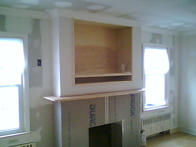 Before stone was added and the mantel completed.